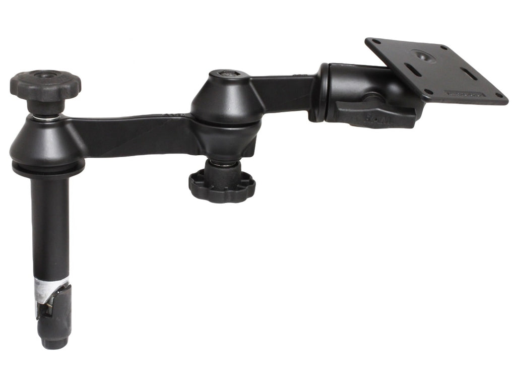 - Square 3.625" plate with a 75mm X 75mm VESA hole pattern and 1.5" rubber ball - ball also allows for the plate to tilt adding more ways to adjust to your best view.