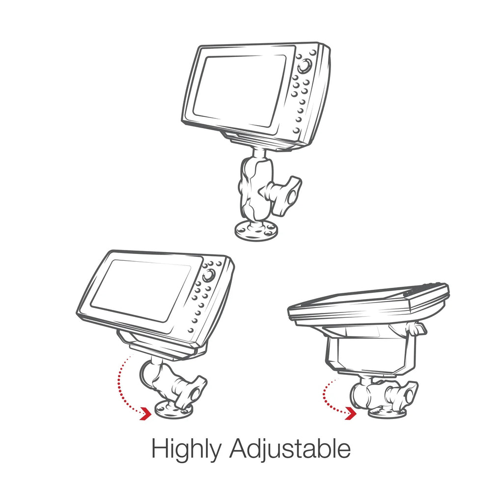 A rugged and durable mount, crafted from durable marine-grade aluminum. RAM rubber ball and socket technology that offers shock and vibration damping, while still allowing for infinite adjustability, so you can easily position your device at the ideal viewing angle
