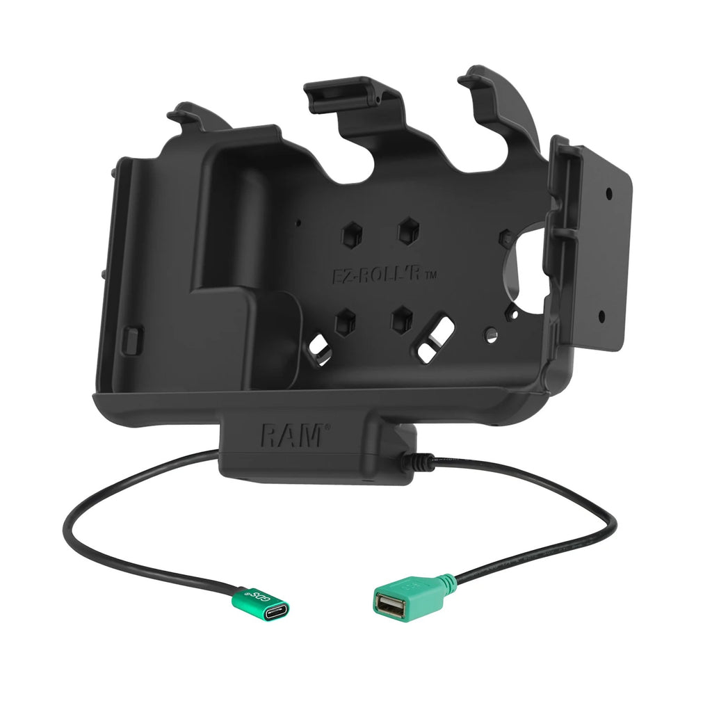 The RAM® EZ-Roll'r™ Modular Power + Single USB Dock Samsung Tab Active5 & Tab Active3 (RAM-HOL-SAM60CPN-1AU) was thoughtfully designed to meet the demands of commercial truck drivers, field service technicians, pupil transporters, logistics managers, forklift operators, and more. Power and data sync capabilities are provided to the device through GDS® pogo pins while taking advantage of this cradle's USB port to support one additional peripheral, making this the ideal, compact mounting solution for your mobile workstation. This modular dock is compatible with the RAM® Skin™ or factory device skin along with most RAM® accessories including: Temperature Control Accessories, RAM® NFC Extender, and side bracket accessory attachments. Modular docks are not compatible with the GDS® Hand-Stand™ but are compatible with the GDS® Roto-Mag™. Access to the stylus remains while the device is docked. Included is a set of four nuts and bolts to connect the dock to any RAM® components containing the universal AMPS hole pattern. Also included is the USB-C female pigtail, cable clamp, and zip ties.