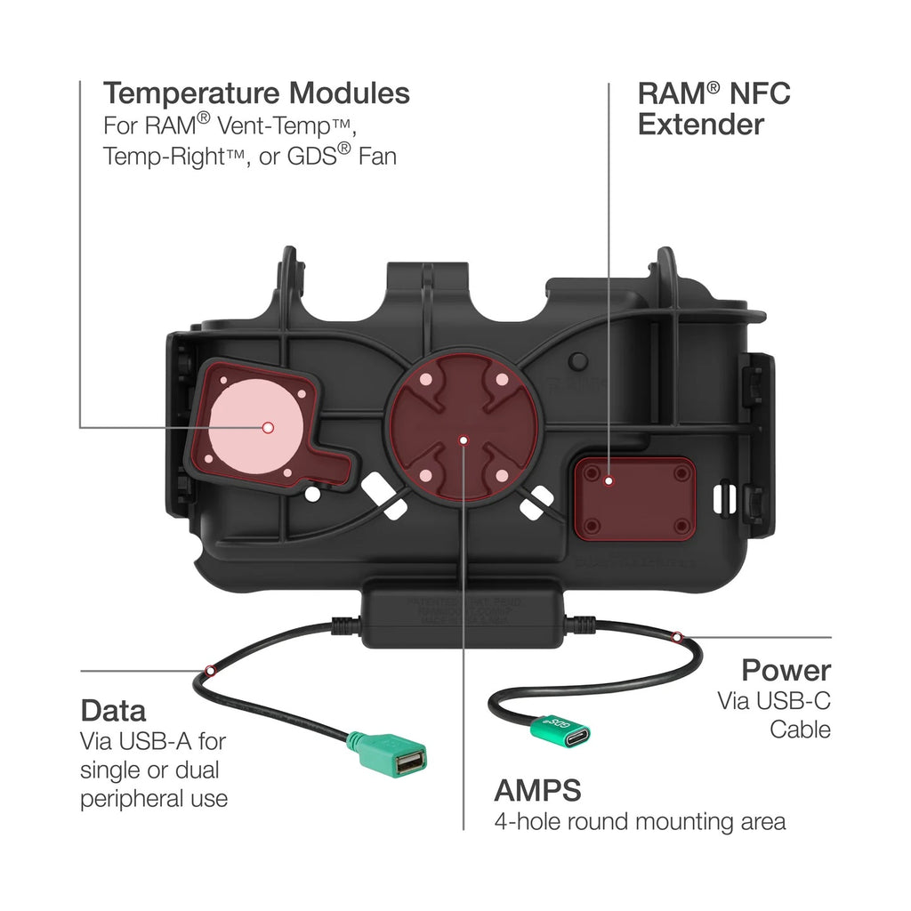 - Compatible with most RAM® dock accessories including Temperature Control Accessories, RAM® NFC Extender, GDS® Roto-Mag™, and side accessory attachments