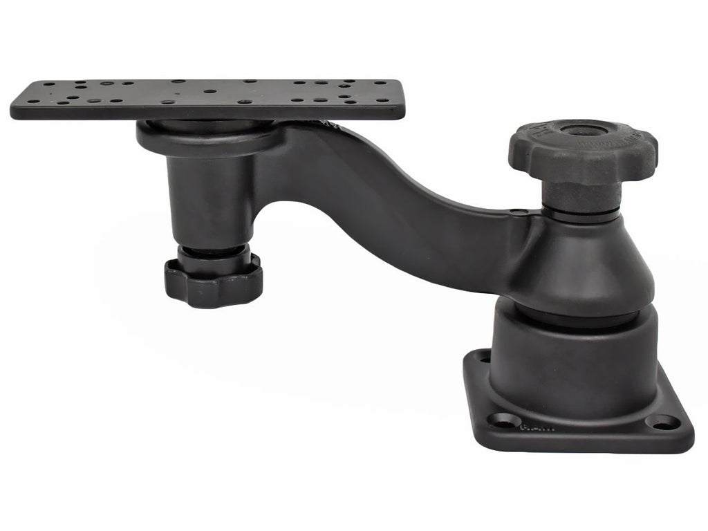 - 6 inch long BENT swing arm mounted on a horizontal surface mounting base.