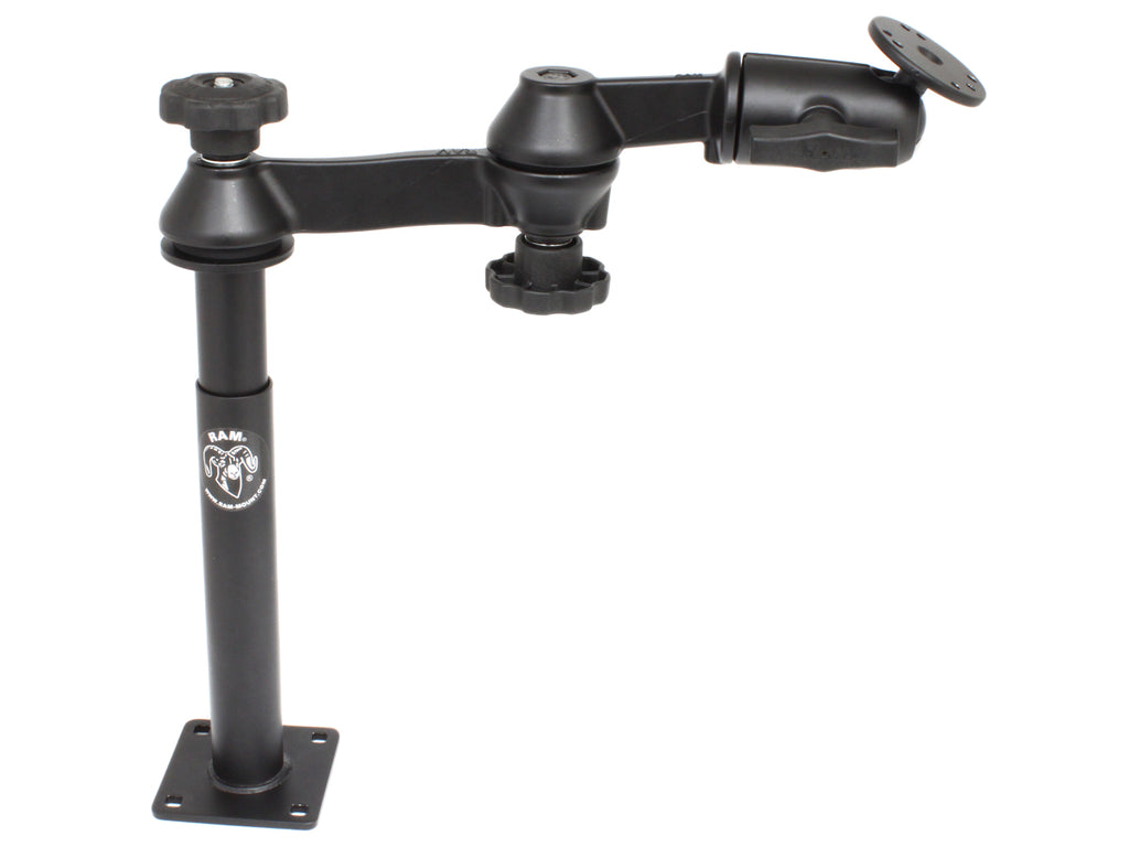 - 9" tall female(lower) Tele-Pole with a 3.5" x 3.5" square plate base with 8" upper male Tele-Pole; will attach to all RAM vehicles bases that do not contain a welded female Tele-Pole
