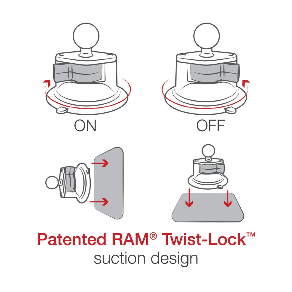 3.3” Twist-Lock™ suction cup base for strong hold on glass or smooth plastic