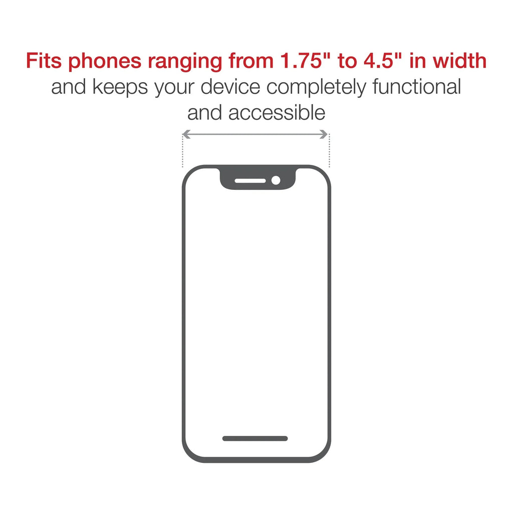 Spring-loaded X-Grip® cradle holds large phones 1.75"–4.5" wide