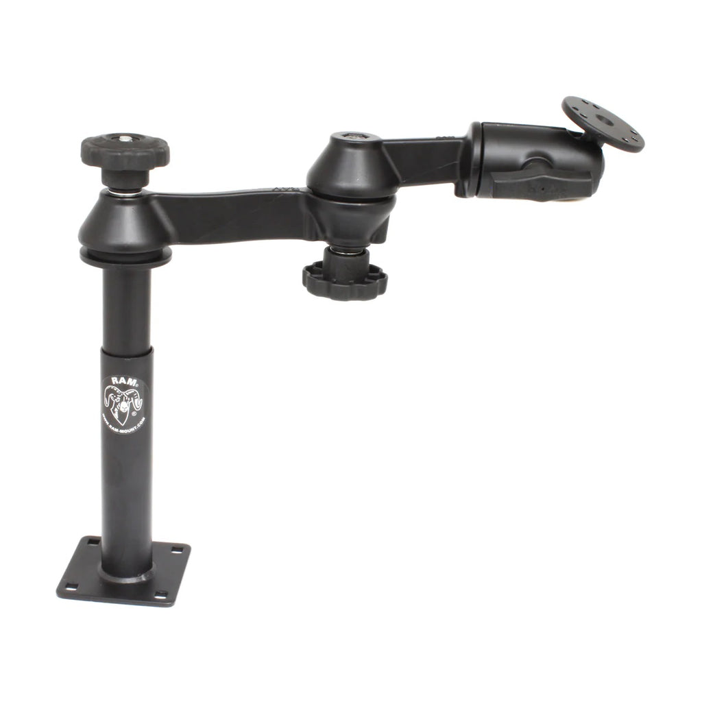 The RAM® Tele-Pole™ Vehicle Mount with Double Swing Arms and AMPS Round Plate is a rugged, fully adjustable mounting solution designed for professional vehicle installations. Built for demanding environments, this system provides exceptional stability, precise height adjustment, and flexible viewing angles for tablets, monitors, radios, and other mounted electronics.